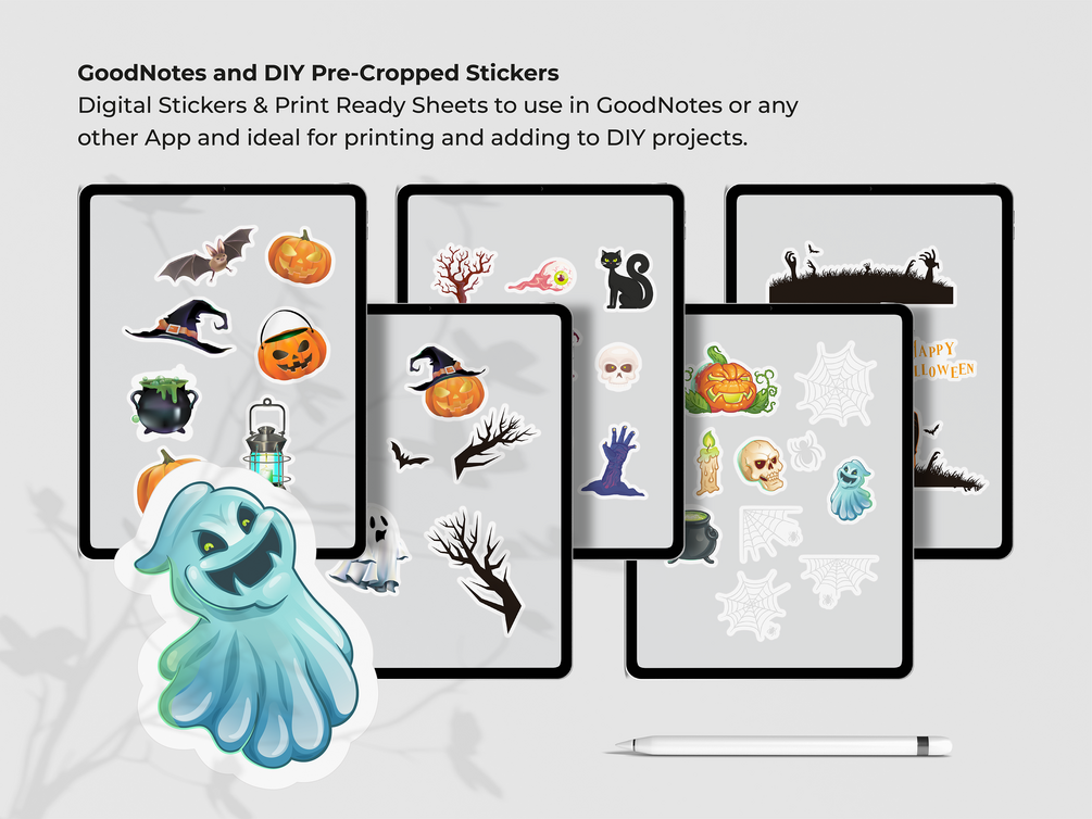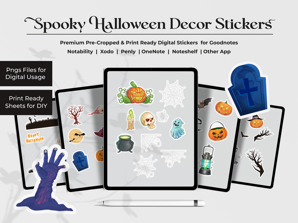 Halloween Digital Stickers | Spooky Pre-cropped Goodnotes & Print-Ready Sticker Sheets | Halloween Decor & Planner Stickers