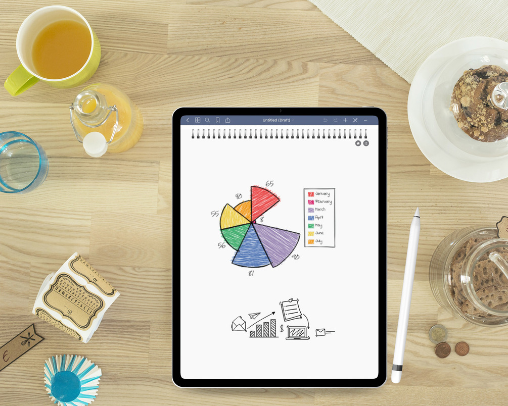 iPad/Android and Apps are NOT included with purchase. Be sure your app and tablet are compatible with annotated note-taking apps. You can download a free notebook here to be sure your app and tablet are compatible: